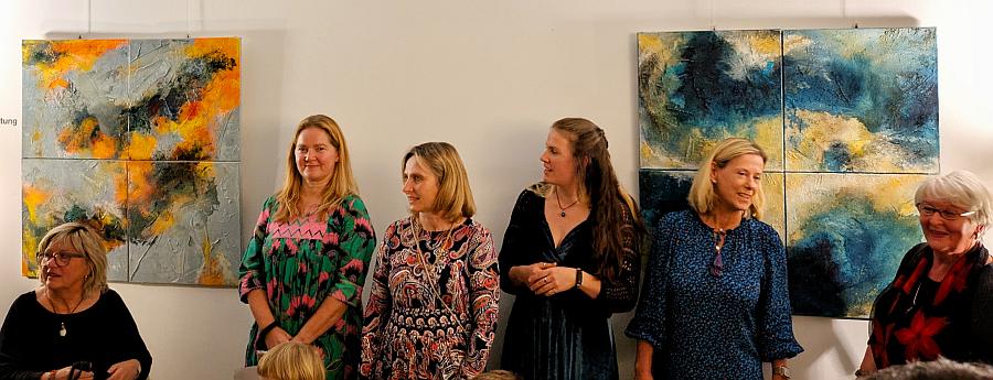 Bei einer Führung durch die Werke gaben die Künstlerinnen Einblicke in ihren kreativen Schaffensprozess und die Arbeit in den vhs-Kursen und standen den Interessierten im Anschluss bei Getränken und Häppchen für weitere Fragen zur Verfügung. Für einige der Werke haben sich so auch Interessenten gefunden.